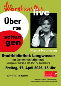 | Autorenlesung mit Musik | Kultur- und Freizeitzentrum BUNI | Margit Heumann, Christine Rieger | (0911) 27464881 (0911) 403508 |